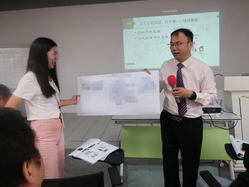 Mr. He systematically taught the basic theory of project management, basic concepts, normative processes, tools and models, typical cases, and strengthened the understanding and mastery of the relevant knowledge points through group discussions, scenario simulation, game interaction and other colourful forms of training.