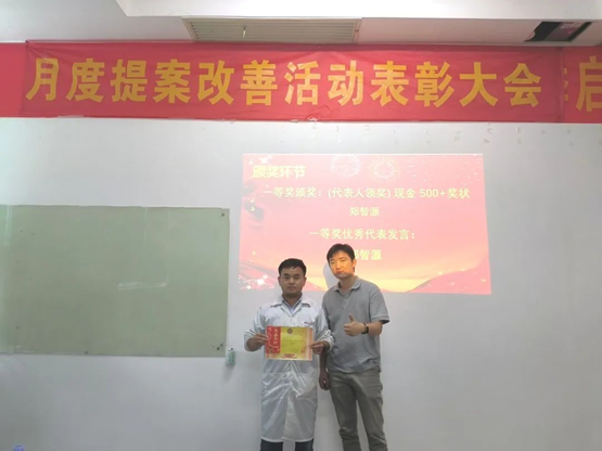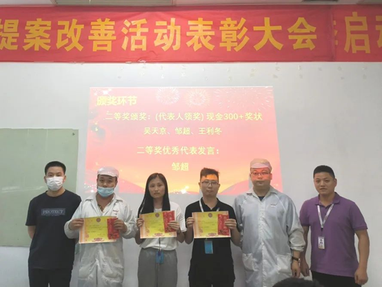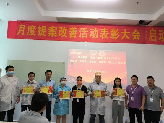 In order to commend employees for putting forward excellent proposals for the company's development, and to fully mobilize the subjective initiative of employees, to promote the improvement of proposals as persevering work, so that more employees can participate, on June 21, 2022, the South China Factory held a May Proposal to improve the commendation meeting. The company awarded honorary certificates and bonuses to the winners of this proposal.