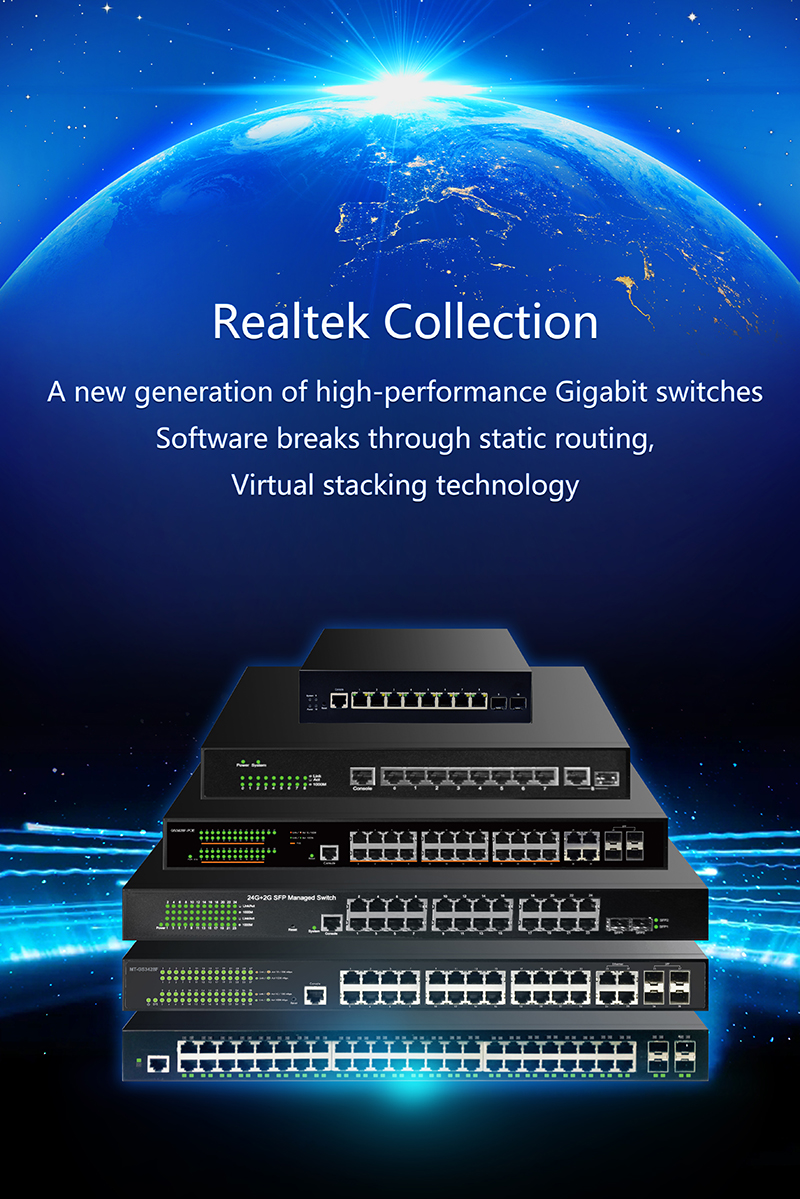 After many years of technical accumulation and precipitation, the digital platform of the MTN has released new functions such as three-layer routing and virtual stacking. The MTN switch enters the era of exchange integration, providing customers with lower cost, extremely simple, easy to maintain and easy to use. Network switch product;