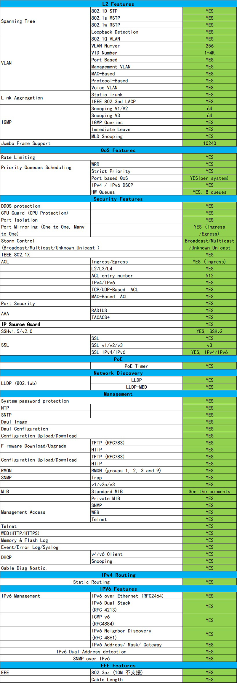 RTL Series Network Management Switch Software Specifications