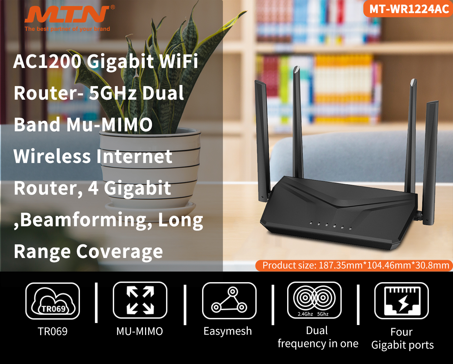 WiFi 5 1200Mbps 11AC dual-band wireless broadband router